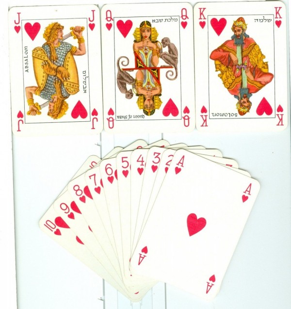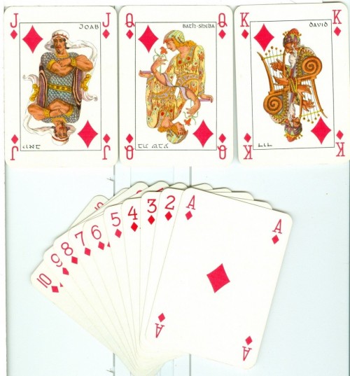Also known as "Raban Bible Cards" and "Old Bible Cards". Designed by Ze'ev Raban (1890 - 1970) of Israel. Commonly and especially more recently available as a double set, they also were sold in single decks in at least 2 colors (red and blue).