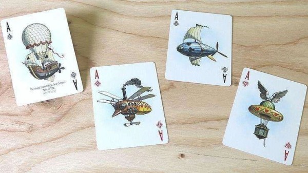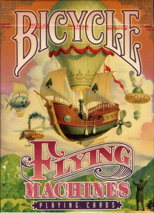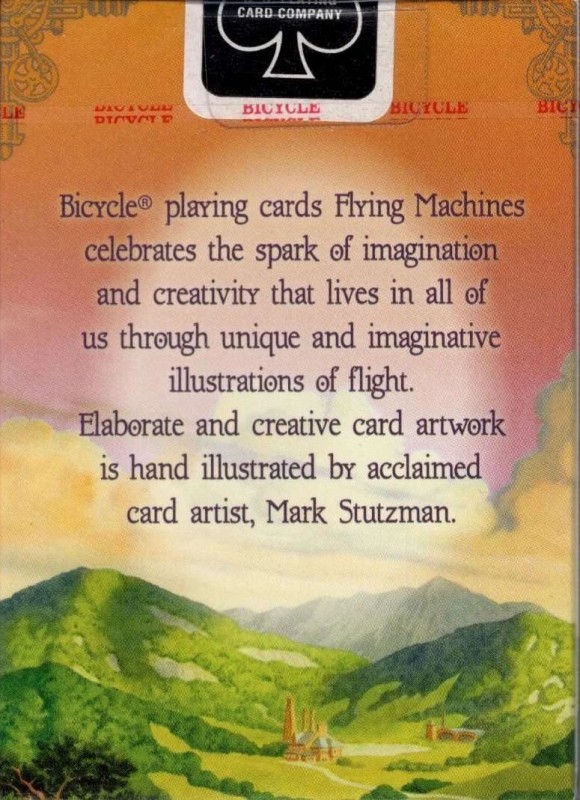 Bicycle Playing Cards Flying Machines celebrates the spark of imagination and creativity that lives in all of us through unique and fanciful illustrations of flight. Elaborate and creative card artwork is hand illustrated by acclaimed card artist, Mark Stutzman.