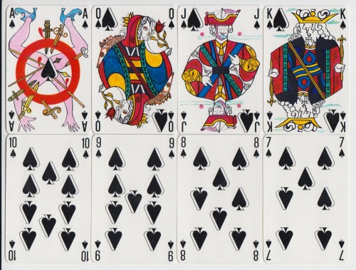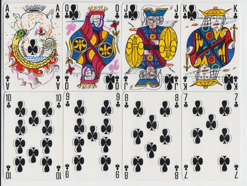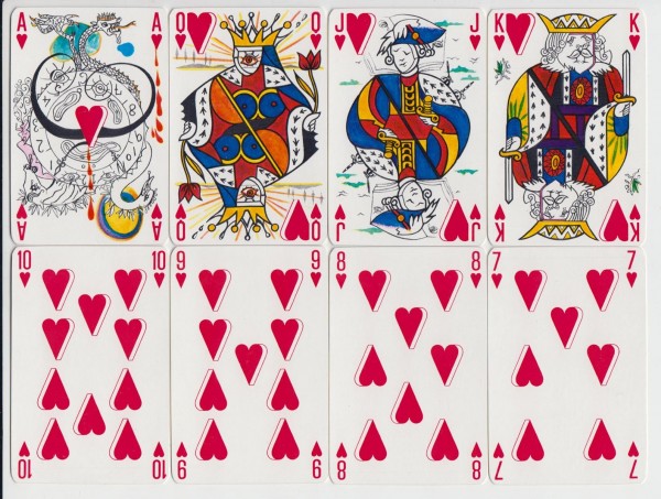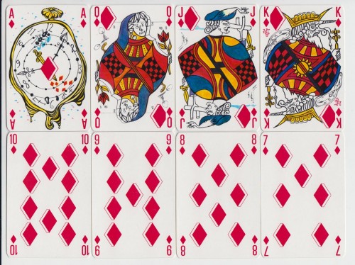 The court cards show lovely artwork by Dali. The pip cards are also customized.