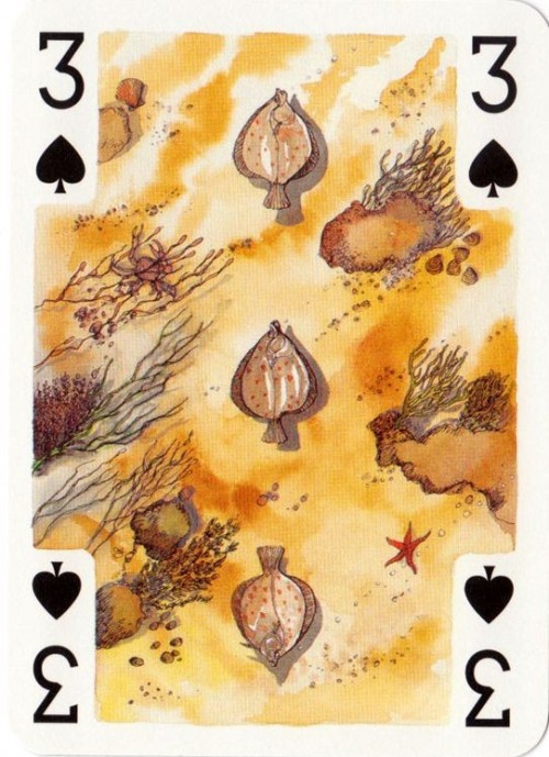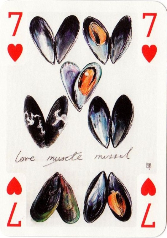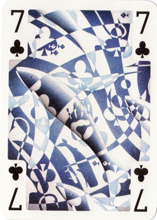 “Under the Sea” transformation playing cards were published in 2005 to raise money for the Marine Stewardship Council (MSC), an environmental charity which promotes sustainable fishing practices. 54 contemporary artists and illustrators were commissioned to create images for the deck, each one donating artwork. The transformations retain the traditional positions of the pips on the cards (apart from the jokers and court cards) while the variety of styles of illustration and design produce an eclectic but visually enchanting set.