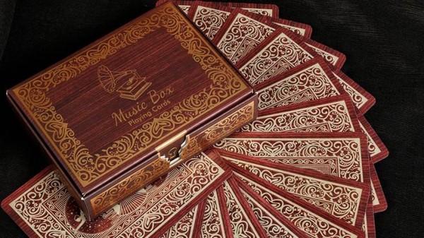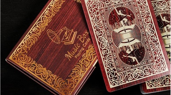 www.marytcusack.com/maryc/decks/html/Cards/MusicBox.htmlThe customized gold foiled Music Box Deck looks and sounds like an actual vintage Music Box! A revolutionary tuck case design opens from the top and once opened, a soft beautiful tune greets you. The song is "Claire De Lune" and it was recorded using a metal comb flicking against metal teeth giving it the genuine music box sound. Song length is 30 seconds.