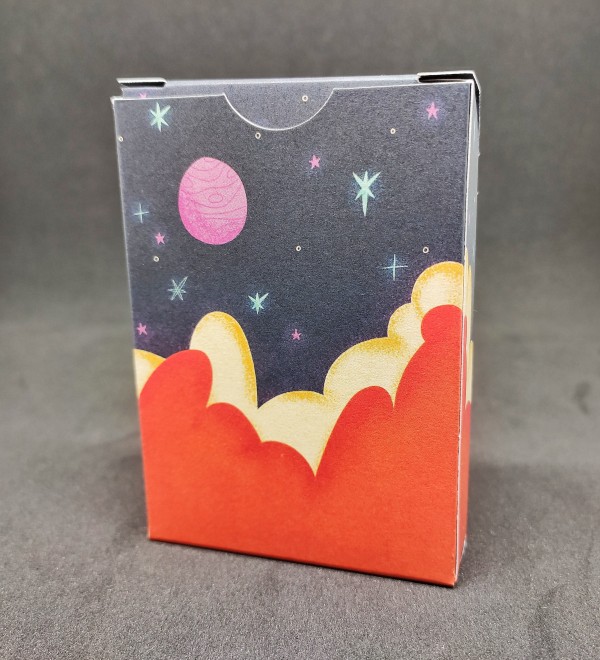 Have you ever dreamt of exploring planets far far away from our solar system? If you have ever wondered what it would be like to peacefully roam around magnificent unknown worlds, the Explorer playing cards are the right choice for you. This new deck takes you on a journey into the whimsical world of a planet on which the characters have just landed with their space shuttle. Immerse yourself into the calming purple hues, sit back, and enjoy the ride.