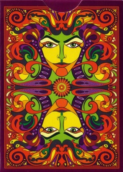 54 custom playing cards with original and colorful artwork by Annette Abolins, inspired by teapots. The artwork is influenced by traditional lino/wood-cut and contour line-drawing techniques (inspired by Annette's collection of whimsical teapots). Each suit has a distinct palette, where color is used to connect and define. Colors shared between the palettes allows your eye to move across the cards and visually connect the deck as a whole.