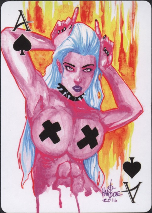 Hartsoe pin-ups are sexy, scary and cool with a bad girl edge. He has been creating memorable Bad Girl Art for more than 25 years and now this deck is the beginning of a new venture. Sexy playing card decks for mature audiences. This deck will be limited to 300 Worldwide and is a must have for Playing Card Collectors. Featuring 54 unique FULL COLOR images.