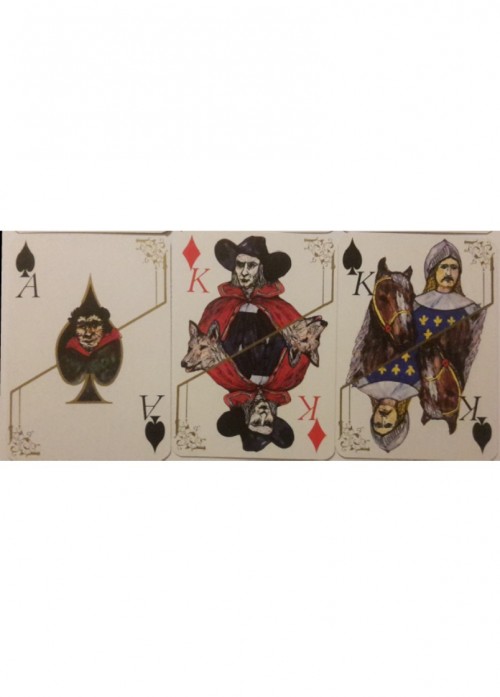This deck was printed in 1985 to commemorate the 100th year anniversary of the death of Victor Hugo, a famous French author. The cards depict characters from Hugo's work.