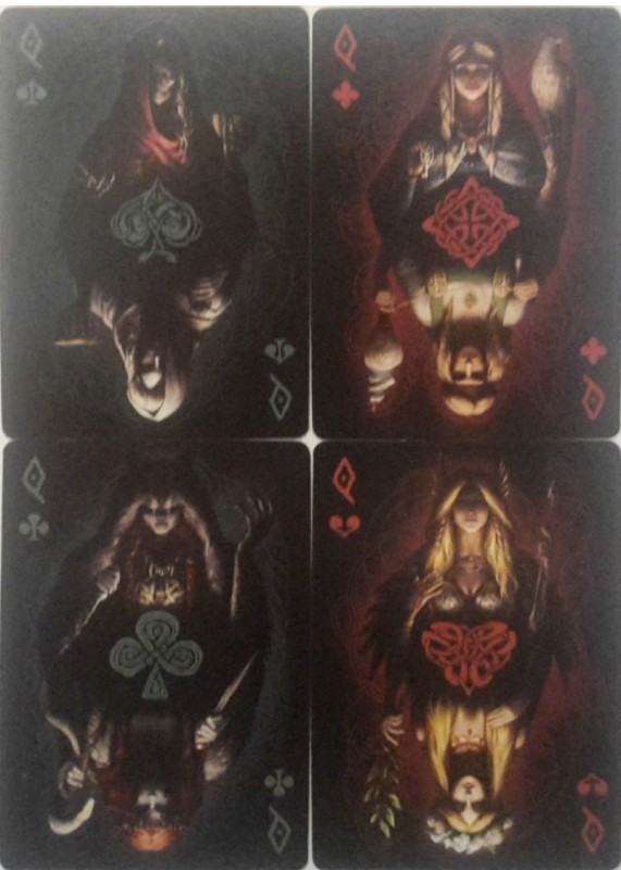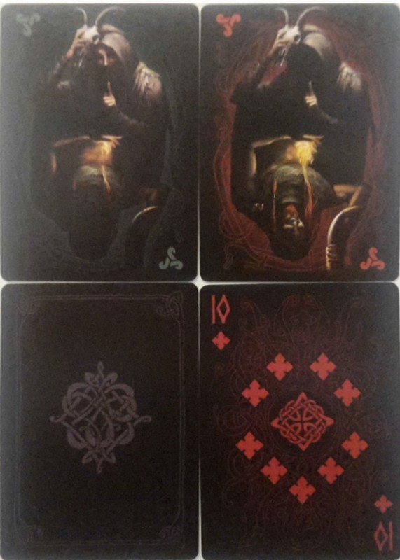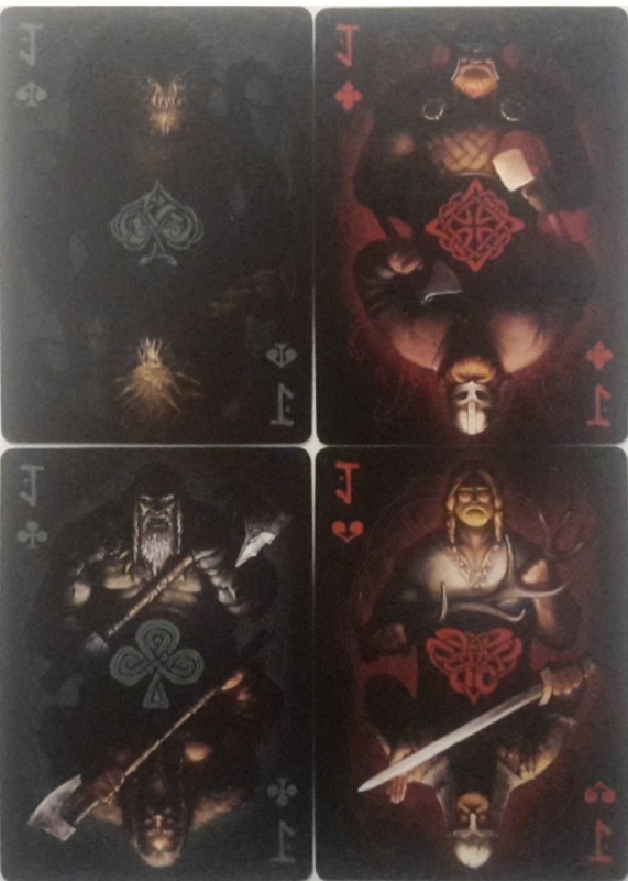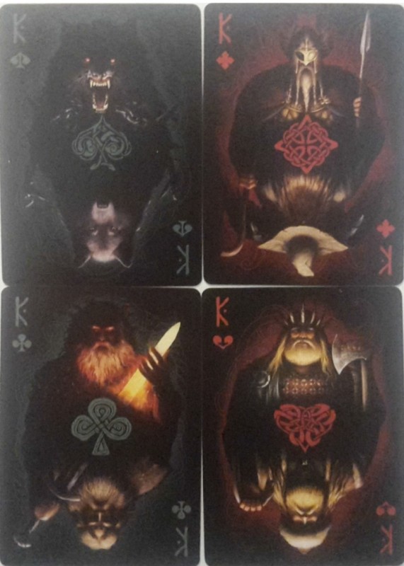This Russian deck features characters from the Viking mythology in its court cards and jokers, which are asymmetrical. The cards are poker sized, 100 % custom and incredibly thick and stiff.