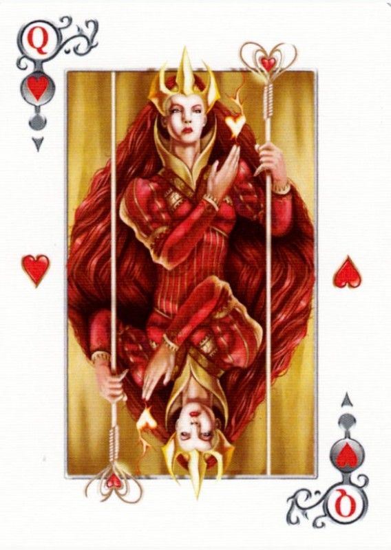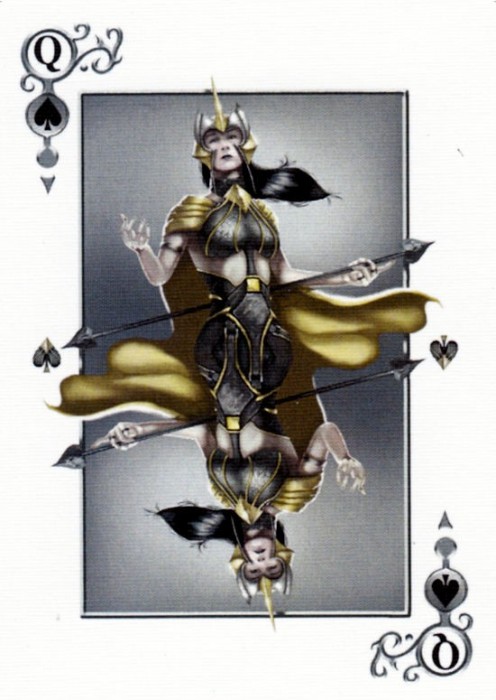 A playing card deck where each suit is a distinctly different set of fantasy characters, featuring White and Dark Knights, Fire Mages and Barbarians.