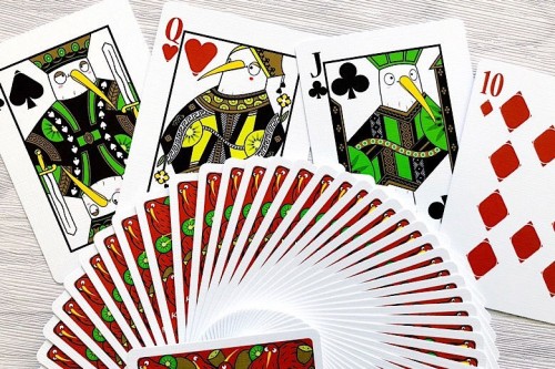 To maintain familiarity, the face cards are somewhat standard. The court cards have been updated with colors to match the theme of the deck, and the Kiwi bird now takes the place of the familiar royals.