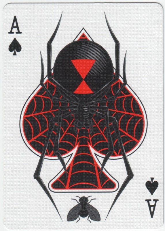 Black Widow Playing Cards is perfect for magicians and cardists who want to capture the attention of their prey. Ensnaring their audiences with its metallic red foil web, and the tell-tale hourglass adorning the card backs.