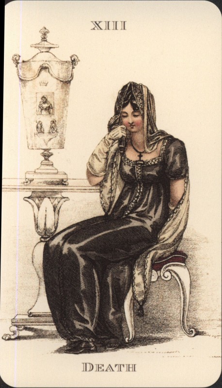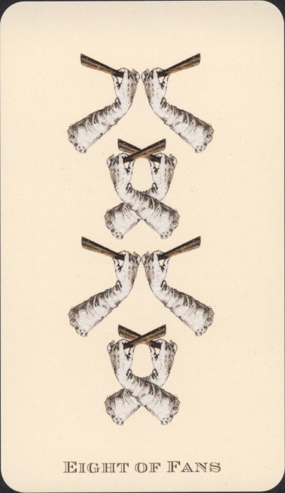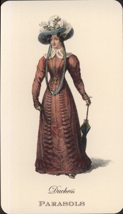 It is a lady-centric deck made of vintage images with alternate suits and some card titles.