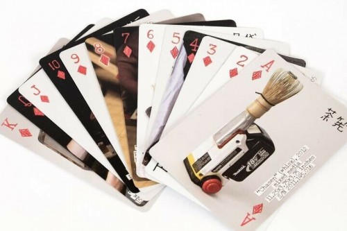 The white plywood edition of the original Japan Deck by American contemporary artist Tom Sachs. Each card face features a photo of an original piece from his Tea Ceremony sculpture series.