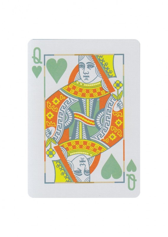 The deck consists of 5 back designs with a rotating border of color. Each color is parallel to its mate. The location of these colors are based on the most common edge grips used in Cardistry. Since each back is a one way, if you rotate it 180 degrees, you get another back design! 10 in total!