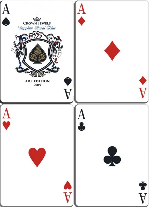 A series of premium playing cards "CROWN JEWELS " The color of Sapphire royal blue prevails in the decks and the boxes are finessed with blue foil overflows.