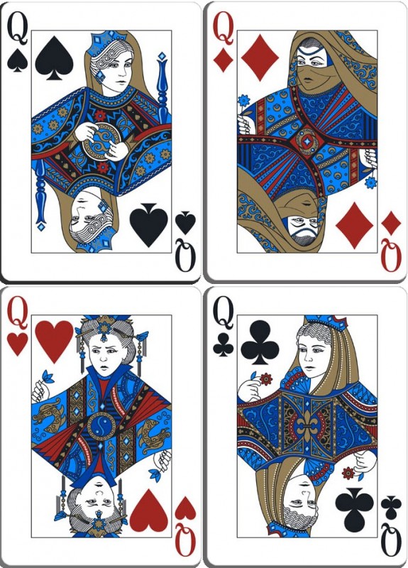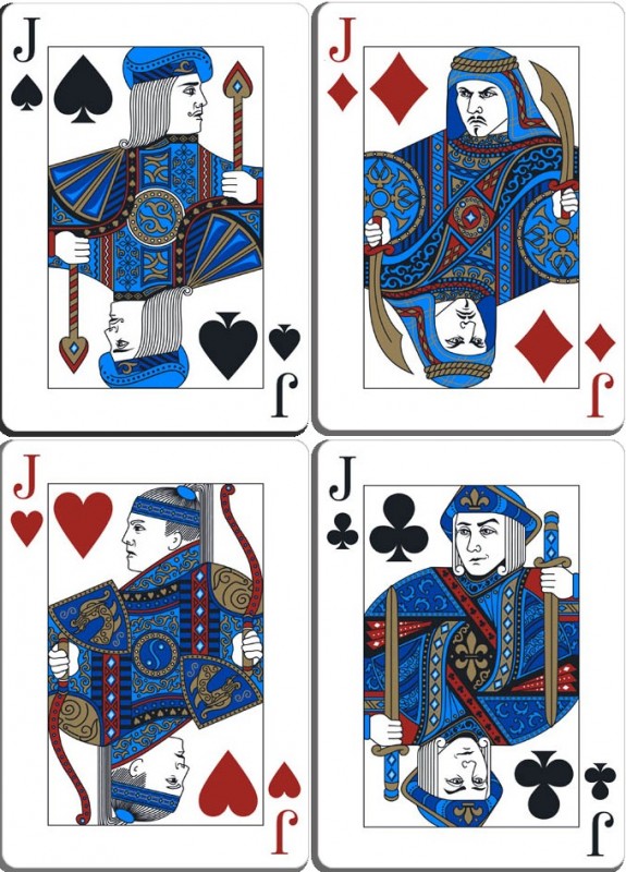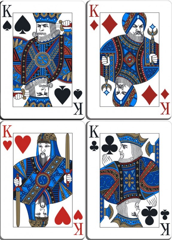 In our deck you'll see a twist on the classic images of Kings, Queens and Jacks, with the decks representing the opposition of the Kings of East and West - bringing the battles of ancient kings to your gaming table!