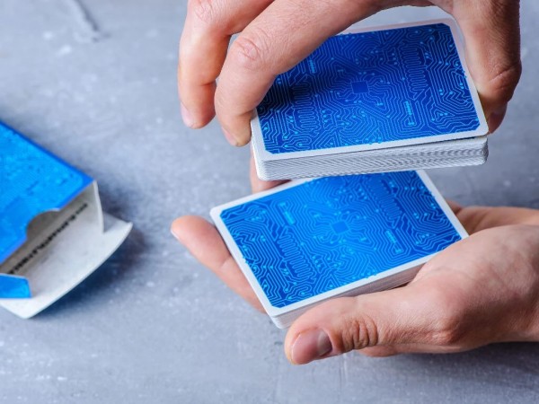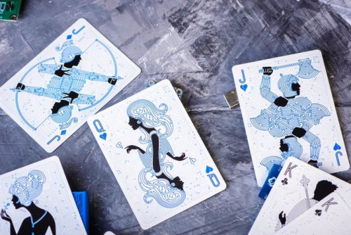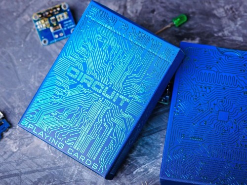 The Ice Blue circuit deck features subtle aqua circuits on a cool color pallet. Similar to the white deck, the card faces are optimised for functionality and ease of play, while the striking back and box draw the eye on every angle.