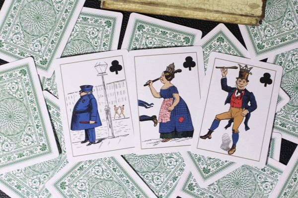 This reproduction deck was first printed in 1876 by F.H. Lowere. It is note worthy as it was the first transformation deck printed in the USA and also the first transformation deck to include a joker. The deck was recreated digitally from scratch with special thanks to Columbia University for providing high resolutions images from the original deck from the Albert Field playing card collection.