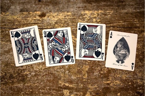 This deck will feature the new set of Kings Wild Standard Vintage Courts. This court set was originally developed for the Tigers but I have evolved it even further from the courts used in the Standard Tigers deck to what you see below. This is the same court set featured in the Thoroughbreds deck, but it will have a Red, White, and Blue color theme in the Americana.