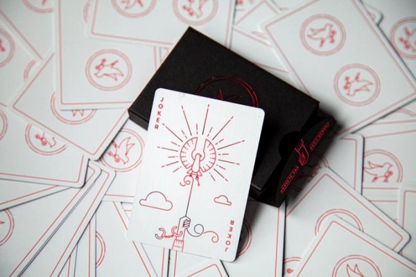 The pattern on the card back is the logo of our partnership with Hope For Justice, a non-profit that is dedicated to ending human trafficking. The custom Joker also features a dove. Dove releases have been around for thousands of years and many different cultures see a dove release as symbol of peace, love, innocence and freedom.