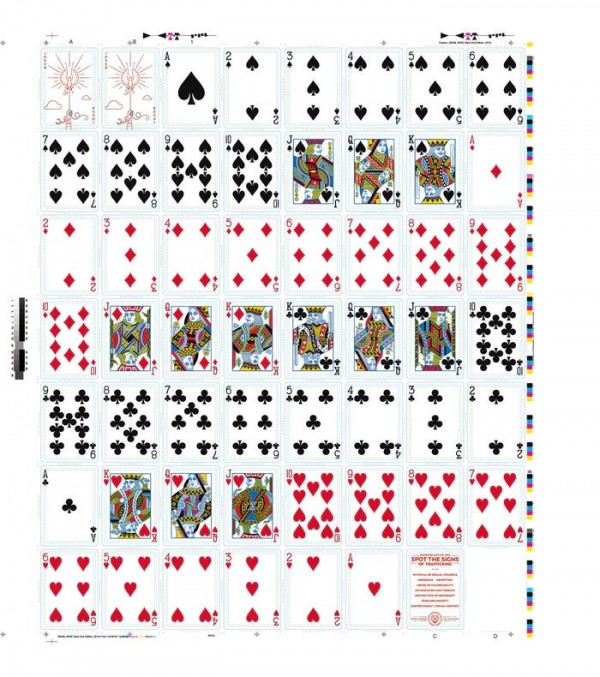 We brought back the same designer from the first edition deck, Aaron Dickey. We went back and forth on every little detail, and wanted the best possible product to put into this world. The tuck box is matte black with a dark red foil. Nothing is printed on the box, just the foil. The front has the unlocked lock and the back has the Hope For Justice dove logo. Whenever Hope For Justice saves someone out of human trafficking, they put an unlocked lock on their wall.