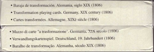 Cotta’s transformation cards were very successful and became a role model for later transformation decks from other publishers. And since the card backs were blank, individual cards were sometimes used by the nobility as visit cards and for leaving messages, so these playing cards often became multi-purpose items.