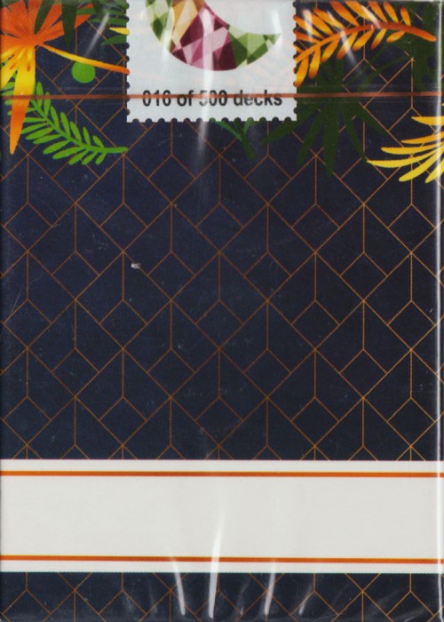 The deck is entirely custom-designed, featuring hand-drawn tuck case, court cards and jokers, and it represents the culmination of a five-month long cultural and artistic study of the variety of Colombia. The main theme of the back is the jungle, from which all the characters, animals and places emerge. After a long back and forth we went for tarot-like, one-sided court cards: despite losing some playability, this allowed us to tell a story and to have bigger versions of the drawings, all different in style.