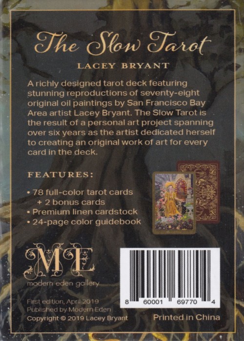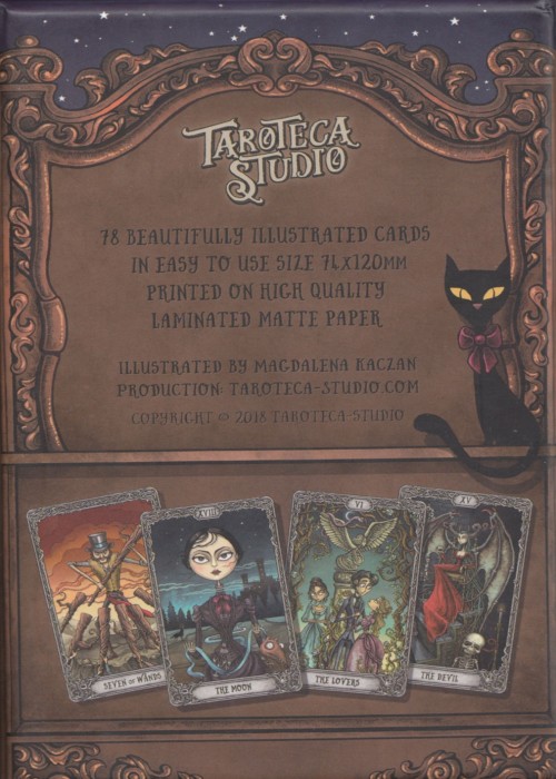 Cards are printed on thick 18pt stock, exceptionally solid in feel and 50% thicker than the standard Rider-Waite deck.