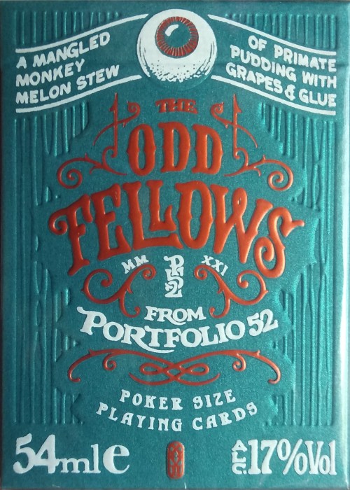 The prototype cards of Odd Fellows Brass Monkey are made by MPC and the graphic differences from the EPCC cards are the following: color variations of the teal (darker on MPC decks), ace with text "prototype", some other minor adjustment