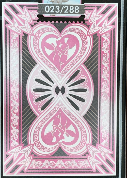 The tuck box is a double box structure. The outer box features a die-cut window which showcase the box inside and you can slide your finger inside to slide out the box. The inner box is the deck case, which holds the cards. The box is made with premium pearl paper matte stock with metallic foil stamping. Also, there is a numbered seal on the top of the box.