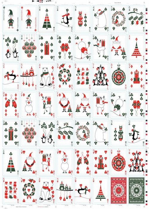 The deck was developed by Natalia Silva with the intent to create using MPC for 'just in time' 2015 Christmas delivery, but Penguin Magic purchased the rights to the deck and pritned using USPCC with pre-orders in early Dec 2015 with delivery shortly after. Both Penguin Magic and Natalia made the deck available for pre-orders and after.