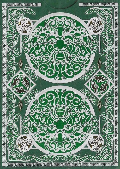 The Standard Edition features tuck box made of green matte stock with three different metallic foil (green, gold, and white) and embossing. The deck is part of a reward for Inner Circle club members. The deck can be used to play a variety game of whist.