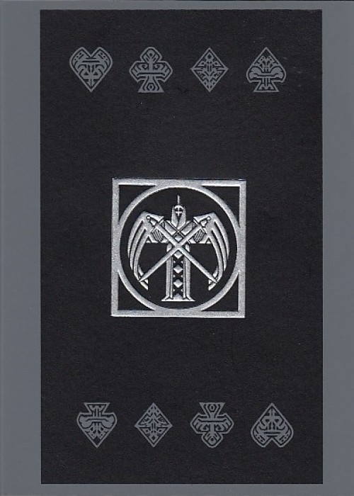 With an intense focus on Gothic surrealism. The glyphs or "letters" that was used in the designs are stylized "demonic calligraphy", a unique phonetic alphabet - to add character and subtext to the art. The cross symbol is one of Noah’s own design that he often adds to the art as a hidden "second signature" called "the infernal cross". Both decks feature accents of artwork made by applying of metallic silver and golden inks.