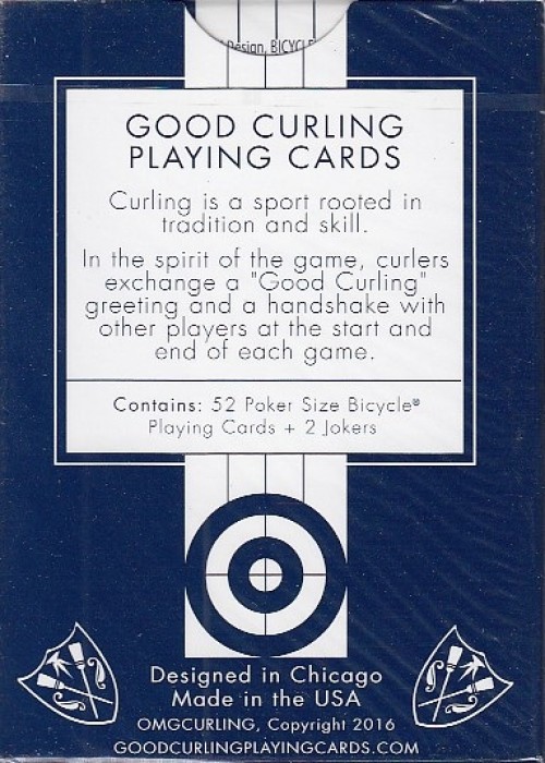 Good Curling Playing Cards pay homage to the sport of curling while holding true to the style and function of traditional playing cards. Spades, Diamonds, Clubs, and Hearts have not been replaced, but are complimented by black and red rocks and brooms. The courts have been taken over by sweeping Jacks, curling Queens, and King skips.