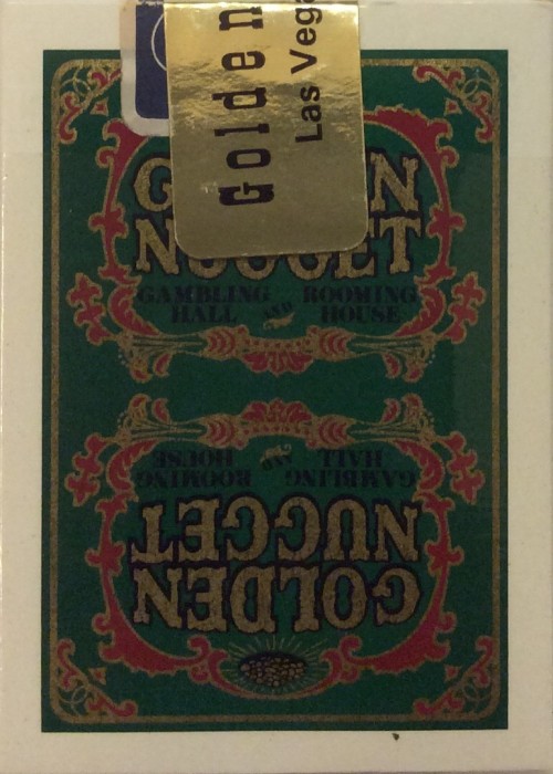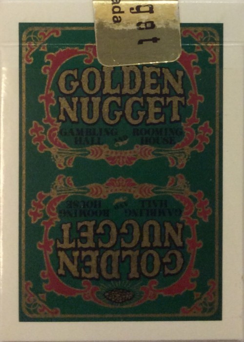 Golden Nugget are the second most famous vintage casino cards (after Jerry\\\'s Nugget). Produced since 1962 they have the most number of colors: Orange, Red, Purple, Black, Blue, Green, Brown, Red/Gold, Green/Gold, Gold/Black, Black/Gold (11 colors and 2 variant of 2 colors). The rarest are 1st run in Purple and Blue with 1-pack tax stamp (produced before June 22, 1965) and Orange deck.
