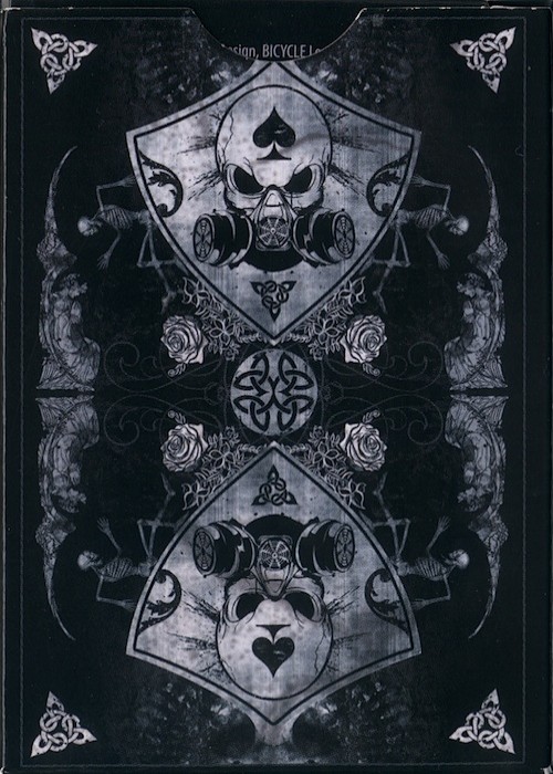GRIMOIRE - "grim'wär - Noun... "A forbidden book of magic spells and incantations... a gateway to the secrets of the supernatural..." In the darkest depths of your imagination, The Grimoire Deck awaits. Containing a wicked menagerie of gothic imagery, subtly adorned with classical Celtic iconography. The Grimoire Deck is crafted by one of the most sought after artists in the magic industry, Manoj Kaushal. His carefully designed, richly detailed images capture the enchantment and mystique of the ancient Magical text after which it is named. Using USPCC's legendary Bicycle card stock, The Grimoire Deck is comprised of twelve customized skeletal court cards, two custom jokers, a Grimoire double backer and a Grimoire/Mandolin double backer.