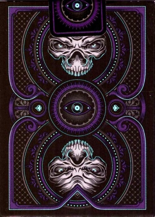 Using USPCC Bicycle card stock, The Grimoire Deck is comprised of twelve customized skeletal court cards, two custom jokers, a Grimoire double backer and a Grimoire/Mandolin double backer.