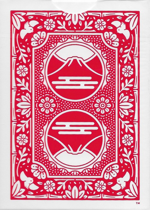 Junior Hanafuda is poker size and the card back design feels both classic and entirely new, exhibiting plants and animals similar in theme but not typically found in hanafuda. It features bamboo along the edges, sparrows in the corners, and Mt. Fuji in the center.
