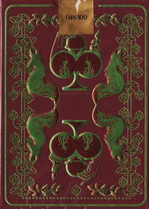 The custom illustrated court cards feature a wildly intoxicated bunch with custom illustrations for each individual pip. The back designs are also 100% custom to each deck in the Odd Fellows series while still maintaining a cohesive design to maintain integrity throughout. This special deck was unlocked at the $100k mark of the Kickstarter campaign and features an upgraded cold foil reflective back design that differentiates it from the other two standard decks of the series.