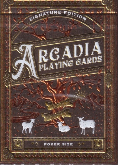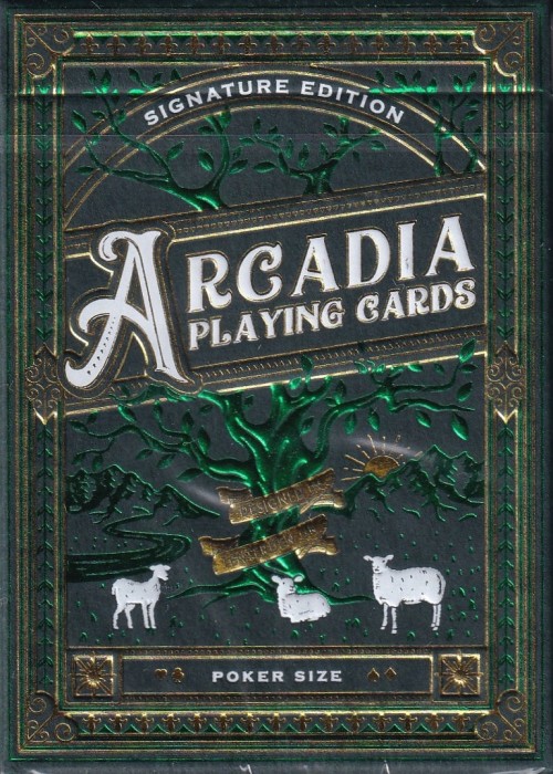 Main decks: Antica (purple foil on the box + gold metallic ink touches inside), Nova (holographic foil on the box + yellow neon ink touches inside) and Aeterna (limited edition containing all 55+55 cards from both decks). Printed by USPCC.