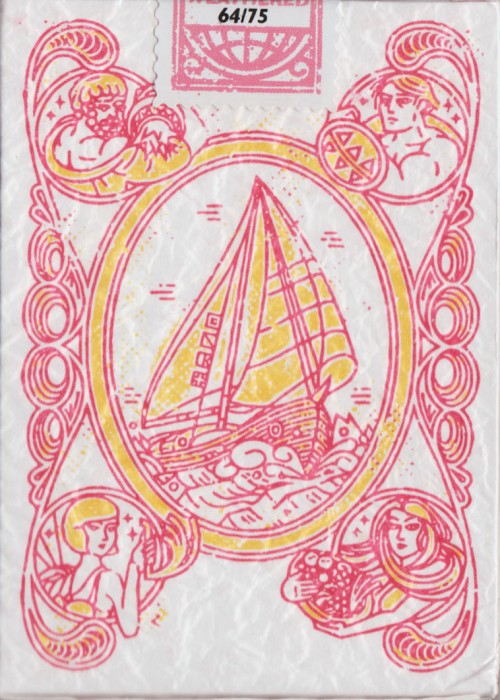 The “Weathered” Edition is far more than just a color change. All the artwork has been completely redrawn with an innovative new method of digital texturing that promises to produce the most realistic wear and tear out there. Speaking of which, you’ve never seen a box with stock quite like this. The “color ravine” paper is durable and highly textured to give it an impasto effect that brings to mind the stucco and stone views of enduring Greek, French, and Italian shorelines. This requires us to employ highly accurate printing techniques to perfectly lay down the ink in those sunny Amalfi colors, also a staple of some of Riffle Shuffle’s most popular decks. The art of this edition is also unique, most prominently on the back, where the four gods of the ordinal winds (NW, NE, SW, SE) respectively push, challenge, guide, and welcome your seafaring vessel. Because, for “weathering” the storm, you deserve a little extra!
