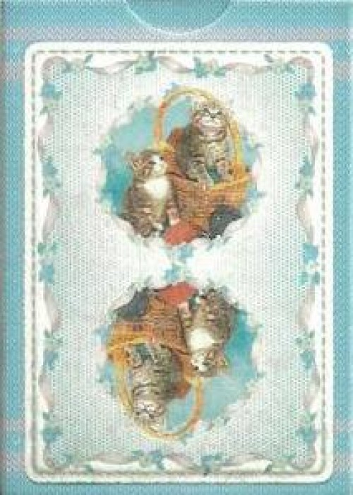 Unlike the rest of the deck, the number cards are designed in a simple way on a white background, which provides a crisp contrast to the busy details of the other cards. While the style is classic, the rendition of the suits is following the overall style of the deck.