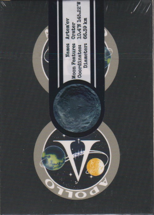 For the Apollo 11 project, we plan to do something very similar. For these playing cards, we're producing seals that represents named craters on the moons surface. We have a list of 1,569 named craters on the moons surface. Each deck will have a unique seal naming one of these craters. In addition to the name, the seal will also list the location, size and a photo of that specific crater.