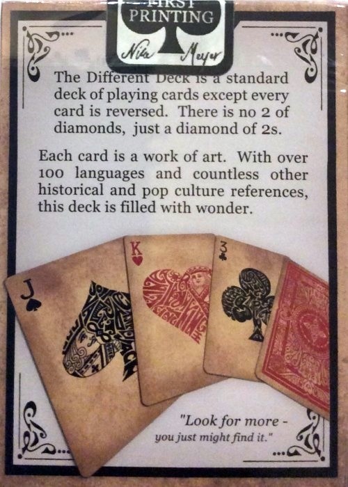 There is the standard version with a white background on the cards and this vintage version which features an aged paper look.  In addition, there were both a v1 (2013) and a v2 (2015) version of this deck that came in a basic clear plastic case.  The newest 'complete version' (2016) does include a proper tuckbox.