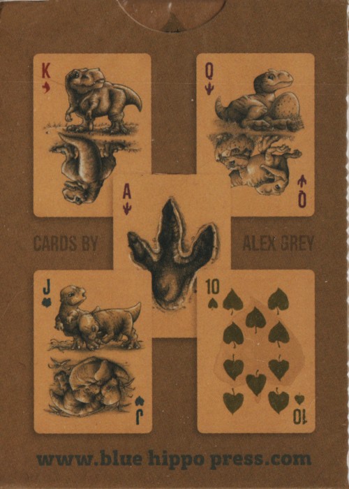 Fans of art decks will enjoy the illustrated court cards. Every Hatchling illustration is a look at baby dinosaurs doing what they love to do. They are hand drawn with pencil and charcoal, on recycled tan paper.