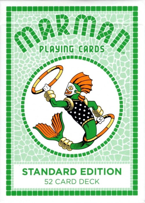 “Sirocco Modern,” with its sharp lines, meticulous composition, and guardian mermaids, is not just a work of art, but a token of a lifestyle and experience - though let’s be clear, it certainly is a work of art. With gold and silver paired foiling, intricate embossing, and double-sided printing all carefully planned and stamped on a matte royal blue “beauty skin” paper, it’s an indulgence that Riffle Shuffle are working hard to make affordable to all. When you open the box you’re greeted by a powerful gust of silver wind, a perfect boost of momentum as you pull out the cards for a knuckle-busting magic trick or to preform a multi-faceted blur of a cut.