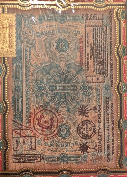 EXPORT 1800 - The standard Cavaliers sent back through time, transforming it into an authentic, old Cuban style cigar box and one incredibly unique collectors item. The box itself mimics a cigar box, complete with an extra flap on the front side kept closed with embedded magnet as well as sealed with custom numbered seal. Tear the seal and open the flap to reveal 8 Cuban cigars! Although the box can be opened like a standard deck to get the cards. The design is inspired by the iconic Havana export warranty stamp seals exclusively issued only to official Cuban cigars. The paper appeared to have aged, as well as stamps and seals can be found anywhere.