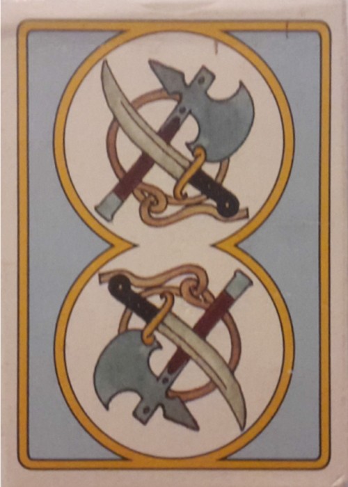 Designed by Rick Davidson of New Zealand, this deck featured a re-interpretation of the original 15th century face cards from Rouen, France that was the basis for the current standard courts now used on so many common playing card decks. Rick carefully studied many historic cards and prints from this time period (http://originscards.com/archive/) to create his new interpretations, but also occasionally brought in modern day inspirations for facial features, including Charlize Theron for the Queen of Clubs.