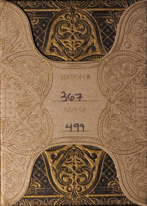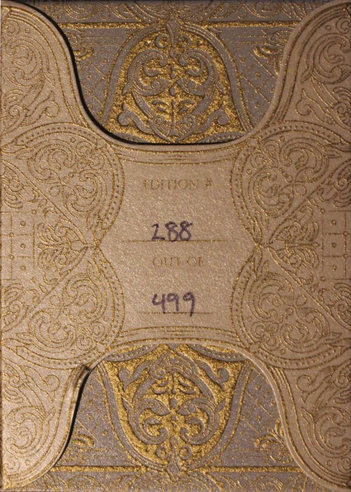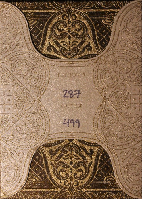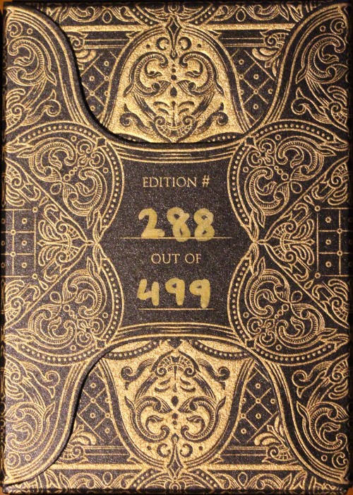 This exclusive black label deck is printed on a stunning Onyx pearlescent stock and gorgeously engraved in gold. It demands attention.