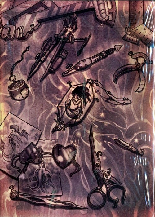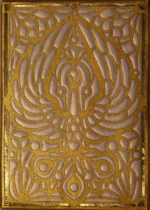 Ye Witches Fortune Telling Cards published by the United States Playing Card Co., 1896. 52 cards + Joker + extra card in box. Available with plain or gold edges and a variety of different back colours. The back shows a coven of witches with a steaming cauldron, surrounded by interlacing dragons and bats. The divinatory interpretations are not printed on the cards, so it was necessary to memorise them, or to improvise. The illustrations are suggestive enough so as to give a hint as to the meaning.