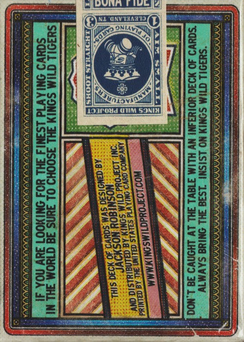 Matt McCormick's drawings are incorporated within the card backs and face cards of the deck. The indices, the Aces, the Pips, the Jokers, and the Courts are all pencil drawings - with the Courts are based on Arrco's royals.