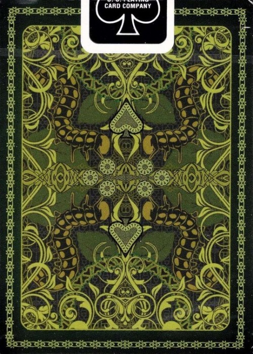 A custom back design playfully references the traditional “rider back” aesthetic and 54 different dinosaurs (some peeking out from diamonds, hearts, spades and clubs) were drawn especially for the faces of these cards. The indices are written in Stout’s own hand.